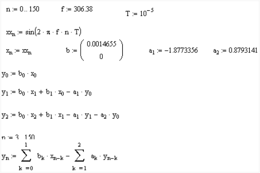 Построим импульсную характеристику в математическом пакете Mathcad 2000: