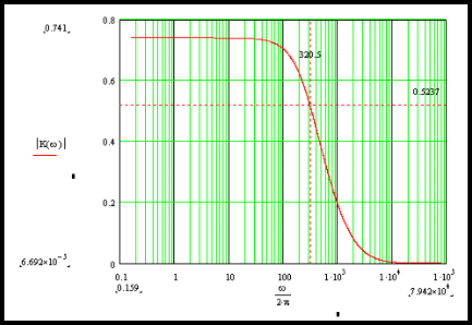 Определяем частоту среза на уровне 0.707Кmax. Из теоретического графика видно, что нижняя частота среза fн≈320.5 Гц. Следовательно, можно сделать вывод, что теоретическая АЧХ полностью совпадает с практической. Значит, передаточная функция фильтра была найдена правильно.