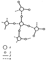 1 — кислород, 2 — водород, 3 — химическая связь, 4 — водородная связь.