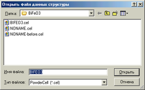 2.2В открывшемся окне находим нужный файл. Файлы PowderCell имеют расширение *. cel и нажимаем кнопку “Открыть” (рис.3)
