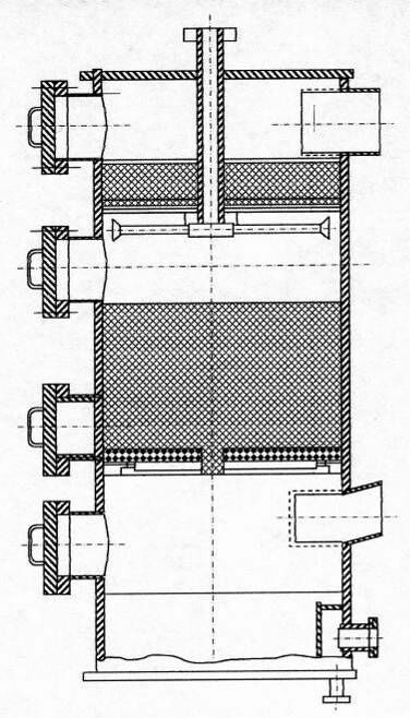 Насадкой в контактном экономайзере служат керамические кольца Рашига размером 50*50 мм. Рабочая насадка укладывается высотой 1 м в шахматном порядке. Каплеулавливающая насадка высотой 0,2 м загружается “внавал”. Вода может нагреваться в этих экономайзерах до 50 – 60 оС. Нагретая вода используется для производственных и бытовых нужд.
