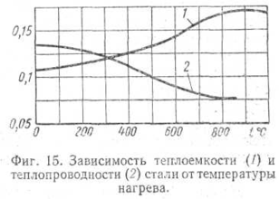Изучение характера и степени влияния теплопроводности осложняется еще и тем, что коэффициент теплопроводности, как и теплоемкость, изменяется в процессе нагрева в зависимости от температуры.