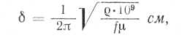 Исходя из этого условия глубину проникновения δ (в см) можно определить из формулы:
