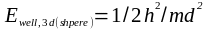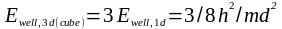 - ширина ями. У квантовій точці носії заряду обмежені по всіх трьох напрямках, і система може бути описана як нескінченна 3-вимірна потенціальна яма. Потенціальна енергія є нулем всюди всередині ями, але є нескінченно великою на її стінках. Цю яму ще називають „ящиком”. Найпростішими формами тривимірної ями (ящика) можуть бути, наприклад, сфера або куб. Якщо форма кубічна, то рівняння Шредінгера може бути розв'язане незалежно для кожного з трансляційних ступенів свободи, і загальна енергія нульової точки є просто сумою індивідуальних нульових енергій для кожного ступеня свободи: