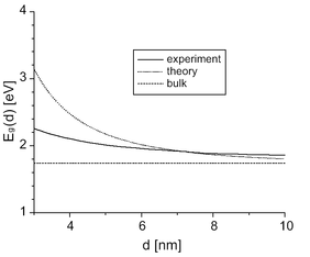. Енергія обмеження завжди є позитивним членом, отже, енергія найнижчого можливого стану завжди вища по відношенню до ситуації у масивному тілі. З іншого боку, кулонівська взаємодія завжди є притяганням для системи електрон-діркова пара і таким чином зменшує енергію її утворення. Завдяки залежності від