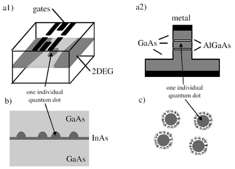 Три типи квантових точок (рис.3) а1 - літографічно отримана квантова точка у поздовжньому оточенні може бути сформована електростатичним збідненням двовимірного газу електронів (