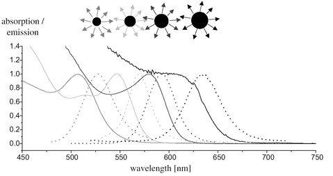 У хімії залежні від розміру колоїдних напівпровідникових частинок оптичні спектри спостерігалися з початку минулого сторіччя, наприклад, для колоїдів