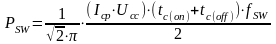 где tc(on), tc(off) – продолжительность переходных процессов по цепи коллектора IGBT соответственно на открывание и закрывание транзистора, с (типовое значение tс(on) = 0,3 – 0,4 мкс, tс(off) = 0,6–0,7 мкс); Ucc – напряжение на коллекторе IGBT (коммутируемое напряжение, равное напряжению звена постоянного тока для системы АИН–ШИМ), В; fsw – частота коммутаций ключей (частота ШИМ), обычно от 5000 до 15000Гц.
