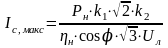 где Pн – номинальная мощность двигателя, Вт; kI = (1,2–1,5) – коэффициент допустимой кратковременной перегрузки по току, необходимой для обеспечения динамики электропривода; k2 = (1,1–1,2) – коэффициент допустимой мгновенной пульсации тока; ηн – номинальный КПД двигателя; Uл – линейное напряжение двигателя, В.