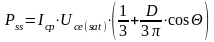 где Iср = Iс.макс/k1 – максимальная величина амплитуды тока на входе инвертора; D = (tp/T) – максимальная скважность, принимается равной 0,95; cos θ – коэффициент мощности, примерно равный cosφ; Uce(sat) – прямое падение напряжения на IGBT в насыщенном состоянии при Iср и Тj = 125 С (типовое значение 2,1–2,2 В).