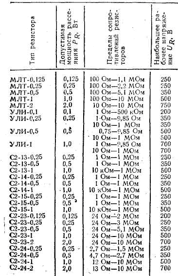 Таблица 1 - Основные параметры некоторых постоянных непроволочных резисторов