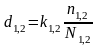 де k1,2 – коефіцієнт пропорційності (в нашому випадку k1 = k2 = 1);