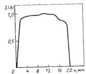 Залежність чутливості від координат ділянок висвітлення називається зонною характеристикою. На рис. 2.10 наведена зонна характеристика одного із приладів, виміряна по діаметру фотокатода. Зміна чутливості ФЕП при висвітленні різних ділянок фотокатода обумовлено нерівномірністю чутливості фотоемісійного шару та неоднаковістю збору електронів з різних ділянок фотокатода на перший динод.