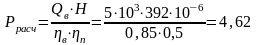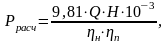 Н- расчетное давление, МПа;