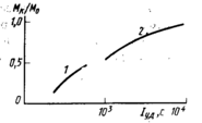 На рис. 1.1 для сравнения показаны соответствующие зависимости для двух типов двигательных установок – с большой и малой тягой соответственно, В случае малой тяги величина Мк/М0 оказывается в несколько раз больше, время перелета при этом, однако, значительно увеличивается. Это отличает ЭРД от других типов ракетных двигателей.