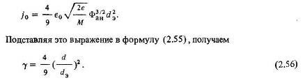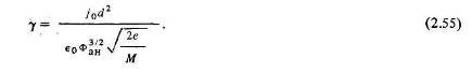 Выражение для критерия подобия у можно представить в более простом виде, если ввести в рассмотрение эквивалентный плоский диод. Так называется двухэлектродный плоский ускоритель, работающий в режиме ограничения тока пространственным зарядом, в котором ускоряющее напряжение и средняя плотность тока на анодной поверхности такие же, как в рассматриваемой ионно-оптической системе. Межэлектродное расстояние в эквивалентном плоском диоде обозначим сэ. Согласно закону Ленгмюра–Богуславского