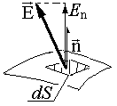Пусть n – единичная нормаль к площадке dS (достаточно малой, чтобы пренебречь изменением электрической напряженности Е в пределах площадки). Поток dФэ электрической напряженности через эту площадку определяется как произведение нормальной компоненты Е и dS: