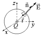 Силовые линии поля точечного заряда перпендикулярны поверхности концентрической сферы (см. рис 1.3.4). С учетом этого факта формула (1.3.4) выводится из выражения для поля точечного заряда (1.2.3). Как видно, в этом случае поток F э не зависит от радиуса сферы, а зависит только от Q .