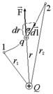 Работа поля по переносу пробного q заряда из некоторой точки 1 в некоторую точку 2 не зависит от траектории его движения и определяется для данного поля и данного заряда только координатами этих точек. Для случая, когда источником поля является точечный заряд Q (рис. 1.6.1) это нетрудно обосновать следующим образом. Работа на элементарном отрезке траектории, по известному из механики определению, есть:
