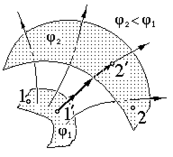 В общем случае разность потенциалов между точками 1 и 2 равна разности потенциалов эквипотенциальных поверхностей, которым принадлежат эти точки. Последнюю можно найти, проводя интегрирование в формуле (1.6.7), по силовой линии, соединяющей точки 1 и 2 этих эквипотенциальных поверхностей. При этом фактически под интегралом будет модуль Е электрической напряженности, т.к. на силовой линии