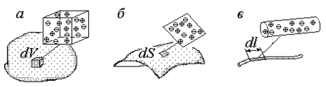 При разбиении заряженного тела объемом V на большое число N малых частей, каждая такая часть может быть рассмотрена как точечный заряд, напряженность поля которого