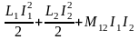 складывается из энергий катушек и энергии, обусловленной их взаимной индукцией