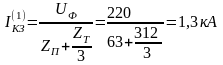 Ток трёхфазного короткого замыкания в точке К-1 определяем по формуле: