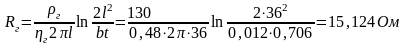 Ввиду достаточно существенной ошибки вновь определим сопротивление горизонтальных заземлителей: