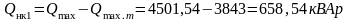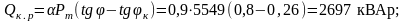 Qрасч = 4501,54 + 456,628 = 4958 кВАр.