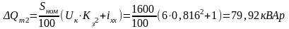 Данные трансформаторов: Потери ∆Pхх =2650 Вт, ∆Pкз = 16500 Вт, Uкз = 6%, Iхх = 1%.