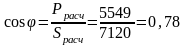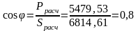 Определим коэффициент мощности на 5 уровне системы электроснабжения.