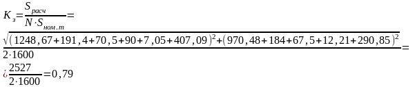 Определим коэффициенты загрузки трансформаторов после компенсации: