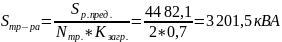 Определяем мощность трансформатора по (4.1):