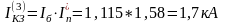 Без учета апериодической составляющей действующее значение IКЗ равен действующему значению периодической составляющей, в А: