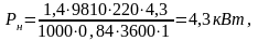 Мощность электродвигателя – привода насоса, Рн, кВт, определим по формуле