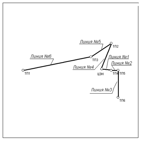 Районная трансформаторная подстанция устанавливается в точке С. Конфигурация сети высокого напряжения приведена на рисунке 8.1