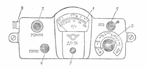 Рис. 1.4. Передня панель радіометра-рентгенометра ДП-5А: