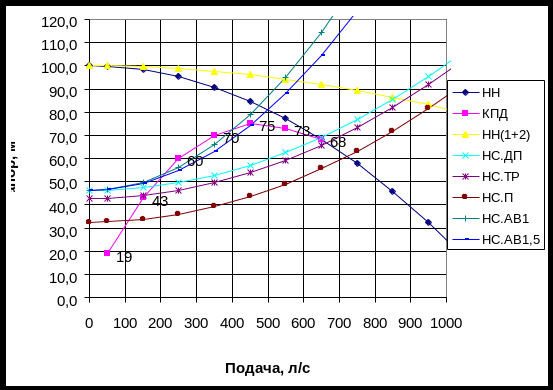 | Q, л/с | HН, м | КПД,% | HН(1+2) м | HС.ДП м | HС.ТР м | HС.П м | HС.АВ1 м | HС.АВ1,5 м |