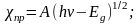 При выполнении этого условия вблизи границы поглощения, соответствующей равенству в (1.1), зависимость коэффициента поглощения от энергии кванта для прямозонных и непрямозонных полупроводников соответственно имеет вид: