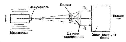 Излучение этого светодиода с помощью отображающей оптики (например, линзы) фокусируется на датчике положения.