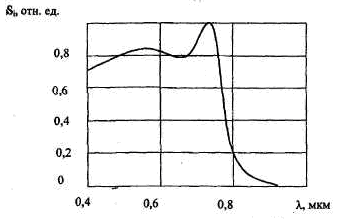 На рисунке 2.6 показана спектральная характеристика гетероэпоксиального p-i-n диода с гетеропереходом тонкого р-слоя Ga1-хAlxAs и р и n слоев GaAs. Видно, что фотодиоды такого вида с успехом могут использоваться в видимой и ультрафиолетовой области спектра. Такие фотодиоды имеют расширенный температурный диапазон использования.