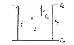 Рисунок 1.1 - Собственные (1) и примесные (2, 3) фотопереходы электронов в полупроводнике (Ел - уровень ловушки)