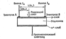 В принципе такой датчик состоит из удлиненного pin-диода с двумя выходными электродами с одной стороны и одним электродом с противоположной стороны (рисунок 2.10).