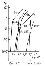 Рисунок 1.2 - Спектральные зависимости обратного коэффициента поглощения ( ) некоторых полупроводников