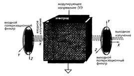 Рисунок 2.9-Электрооптический модулятор, состоящий из двух поляризационных фильтров и кристалла