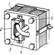 Катушки намотаны па изоляционном каркасе 4 для того, чтобы от усилий натяжения провода при намотке не возникали механические напряжения во внутреннем магнитопроводе.