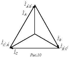 На рис. 10 представлена векторная диаграмма симметричной системы линейных и фазных токов. Ее анализ показывает, что при симметрии токов