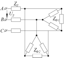 IϕΔ=UϕΔ/ zϕ=IлΔ/√3; UϕΔ = Uл,