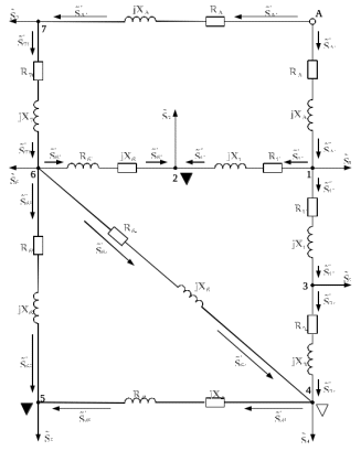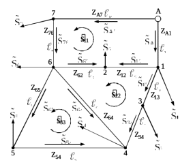 Расчёт потокораспределения в заданной сложнозамкнутой сети проведём методом контурных мощностей (токов) в предположении, что сечение проводов на всех участках одинаково. При расчёте необходимо принять следующие допущения: напряжение во всех узловых точках сети равно номинальному напряжению сети, потерями мощности на участках сети и проводимостями ЛЭП пренебрегаем.