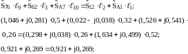 Вычислим значения правых частей уравнений системы (4) и коэффициенты, стоящие перед переменными